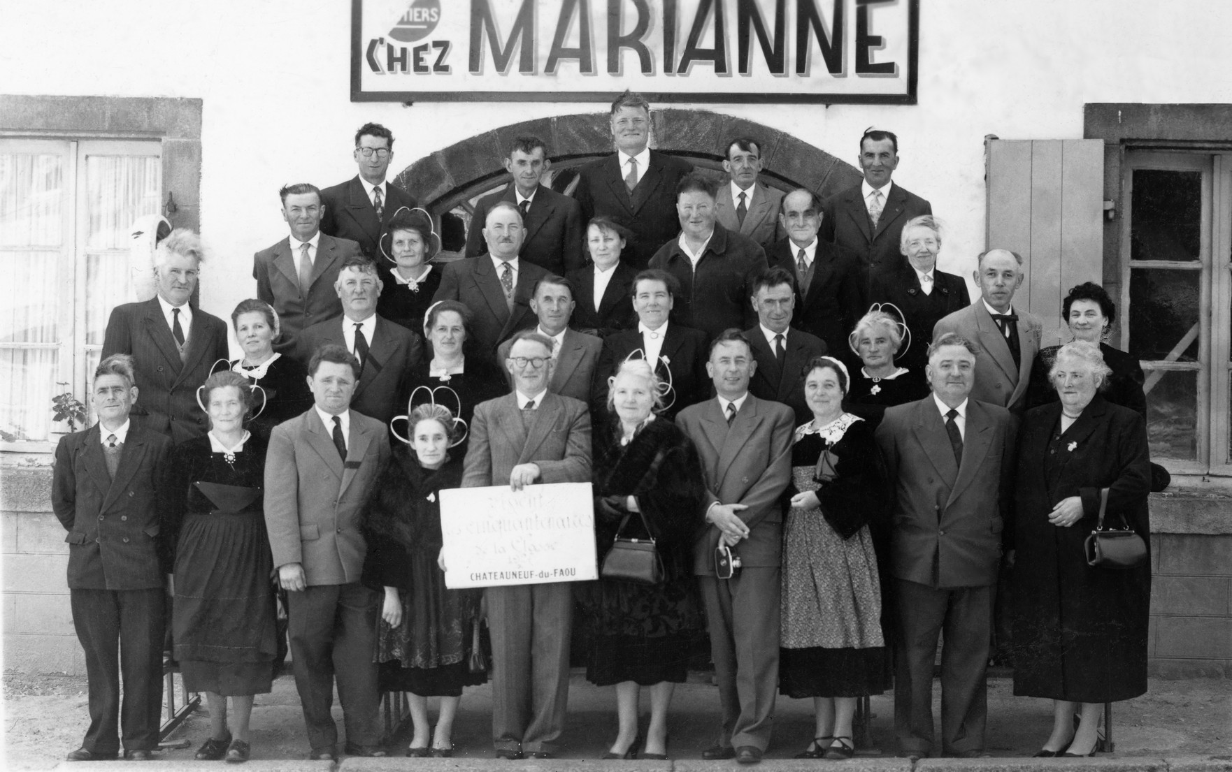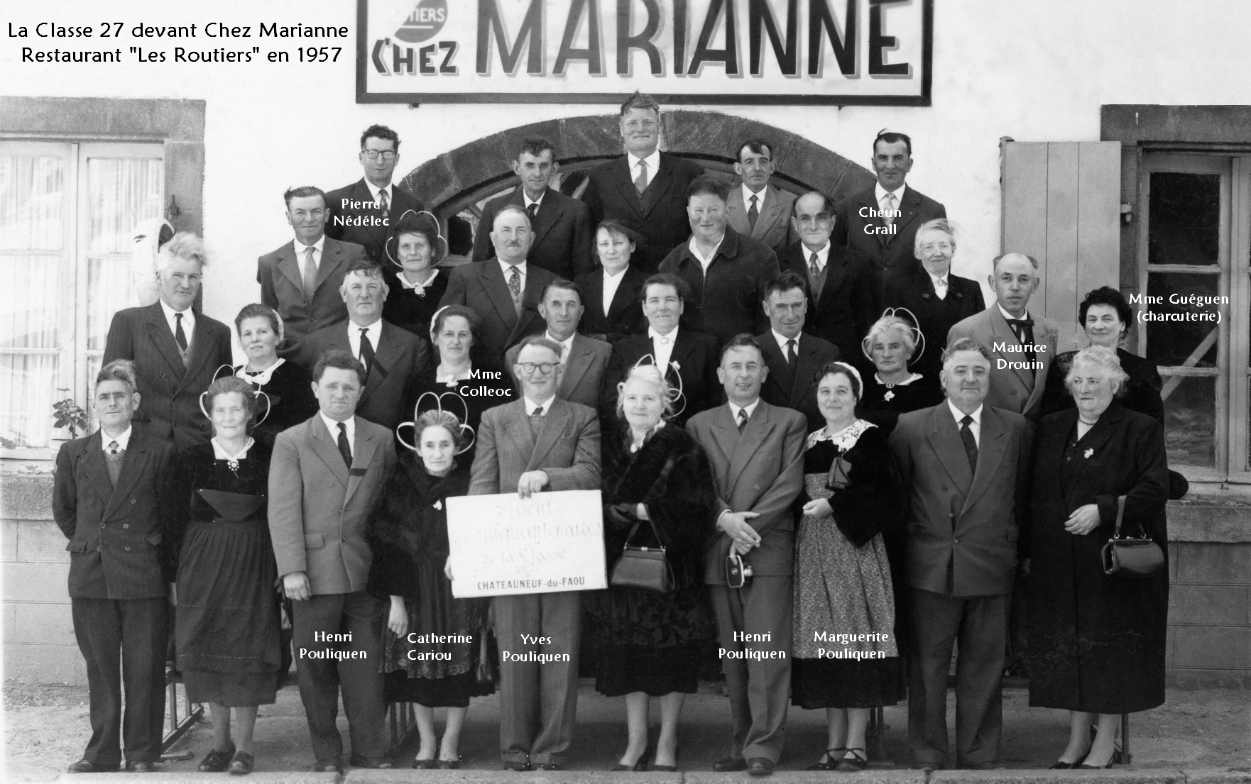 Les quinquagénaires de l'année 1957 posent devant le restau "Les routiers". Chez Marianne pour les habitués. On y mangeait des langoustines succulentes !
