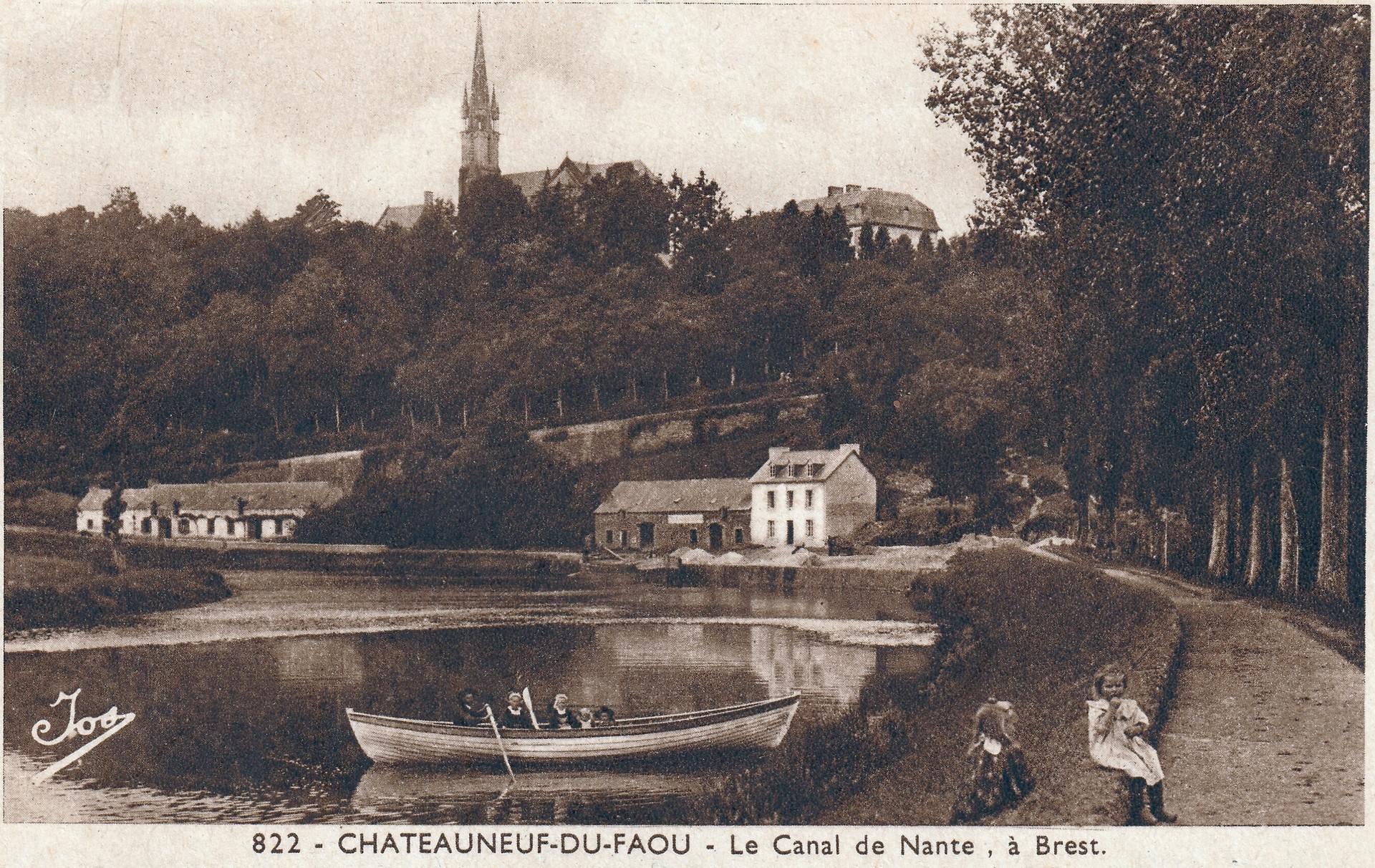 Une balade en barque pour le plaisir des petits et des grands. Au second plan, on aperçoit le quai du port de Châteauneuf, toujours en activité, et les péniches amarrées.