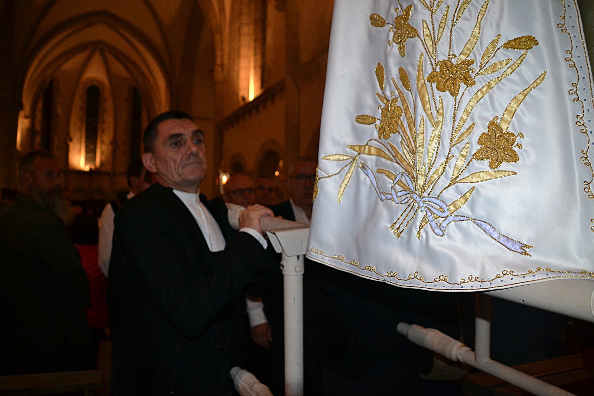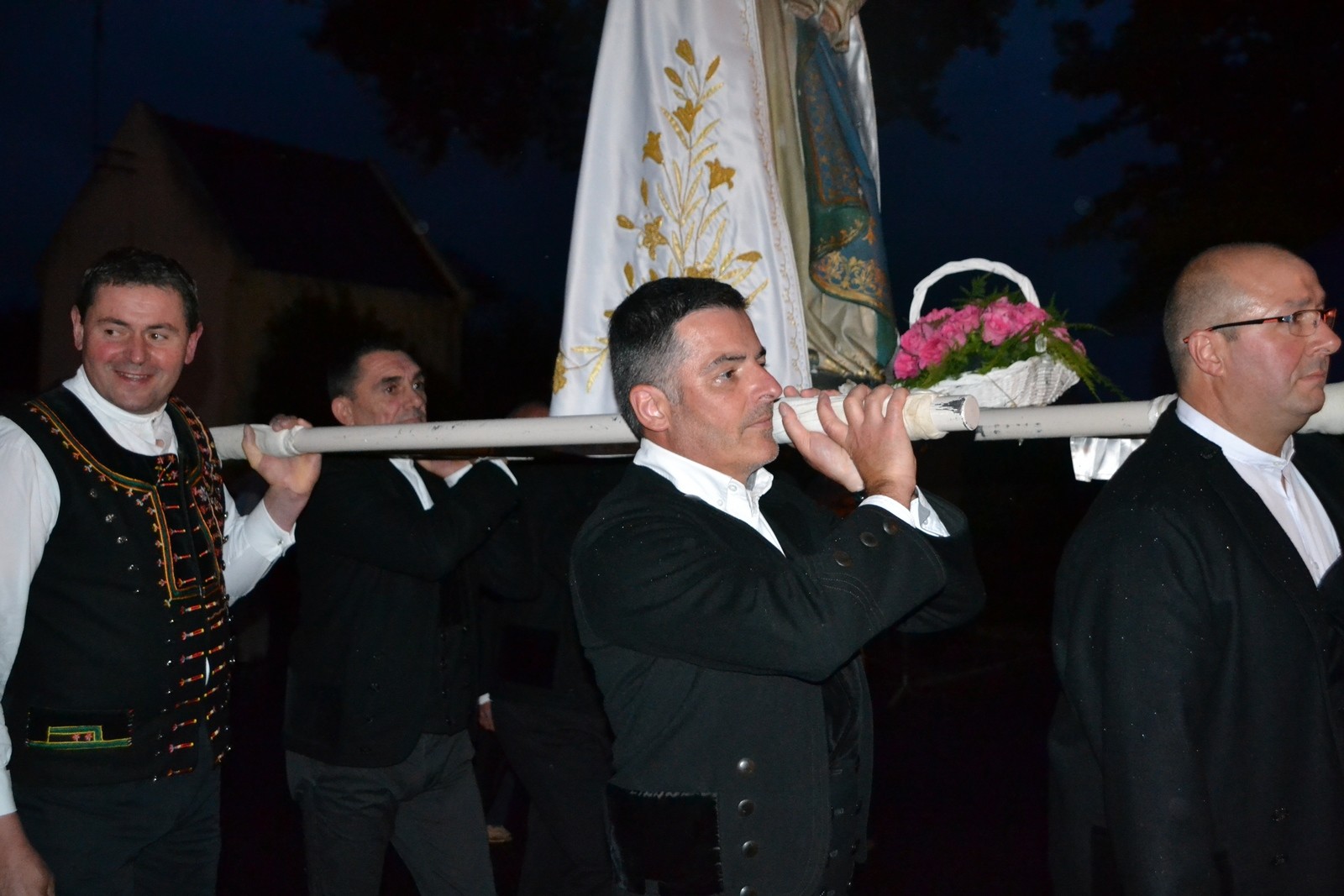Et les hommes de 50 ans ayant endossé leurs beaux costumes (sans les chapeaux), portent Notre Dame des portes à travers la ville. Ils prendront toutefois quelques bonnes gouttes avant de rejoindre la chapelle.