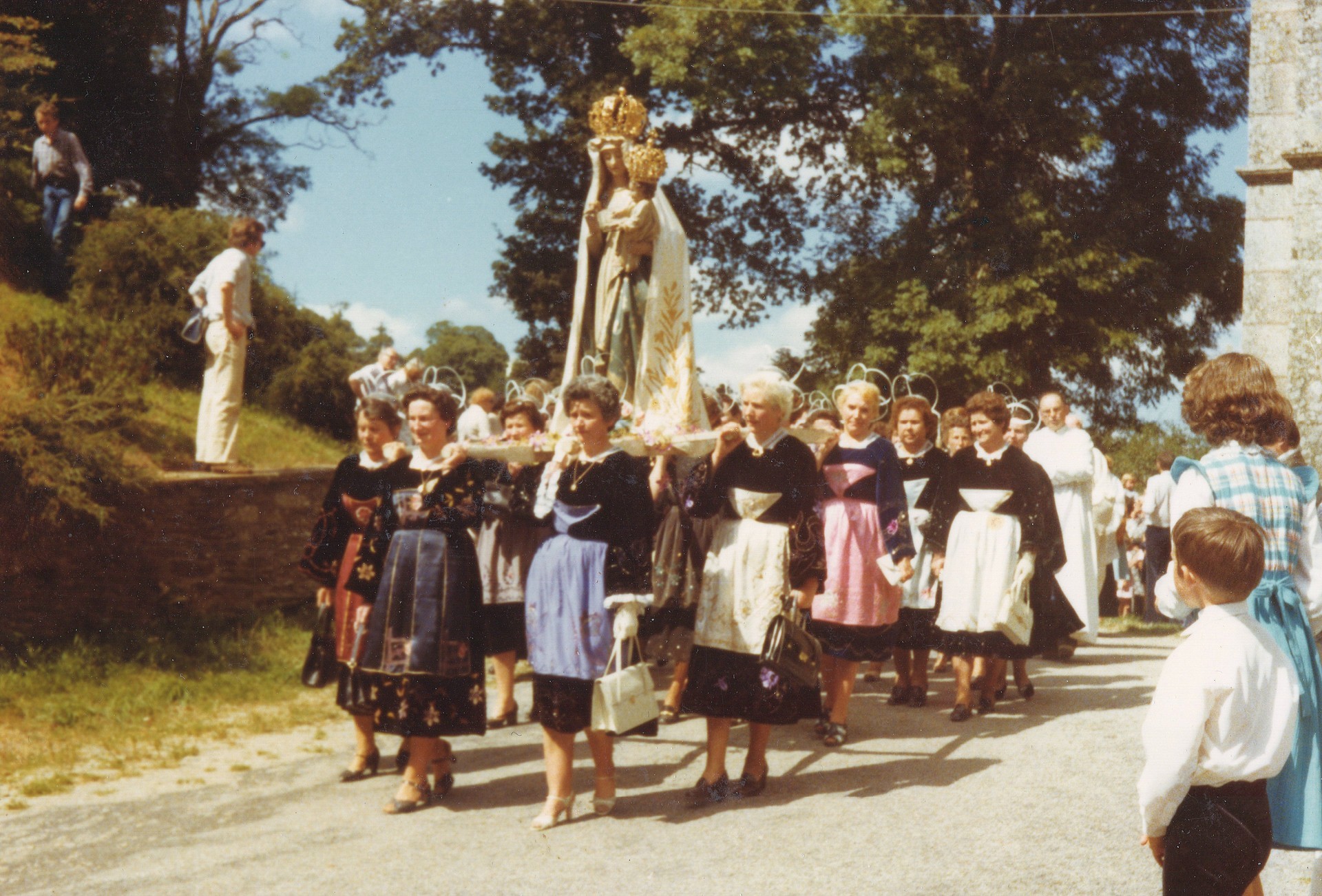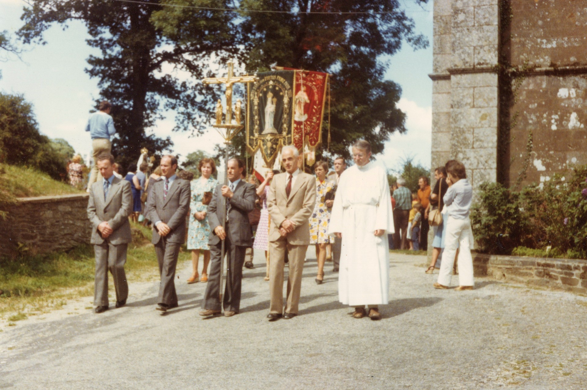 En ce 20 août 1978, une procession qui débute sous un beau ciel bleu parsemé de quelques petits nuages.