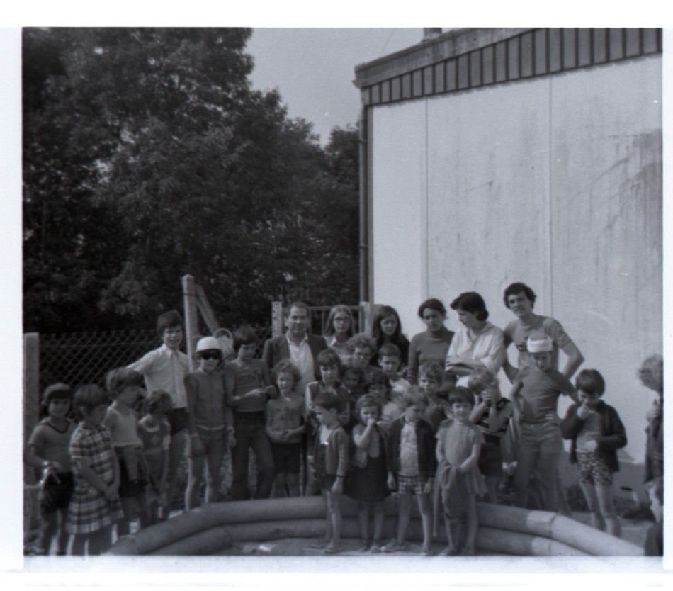 Une photo de groupe lors de la visite du maire Georges LE MEUR dans les derniers jours du centre aéré. Il faisait si chaud cette année là !