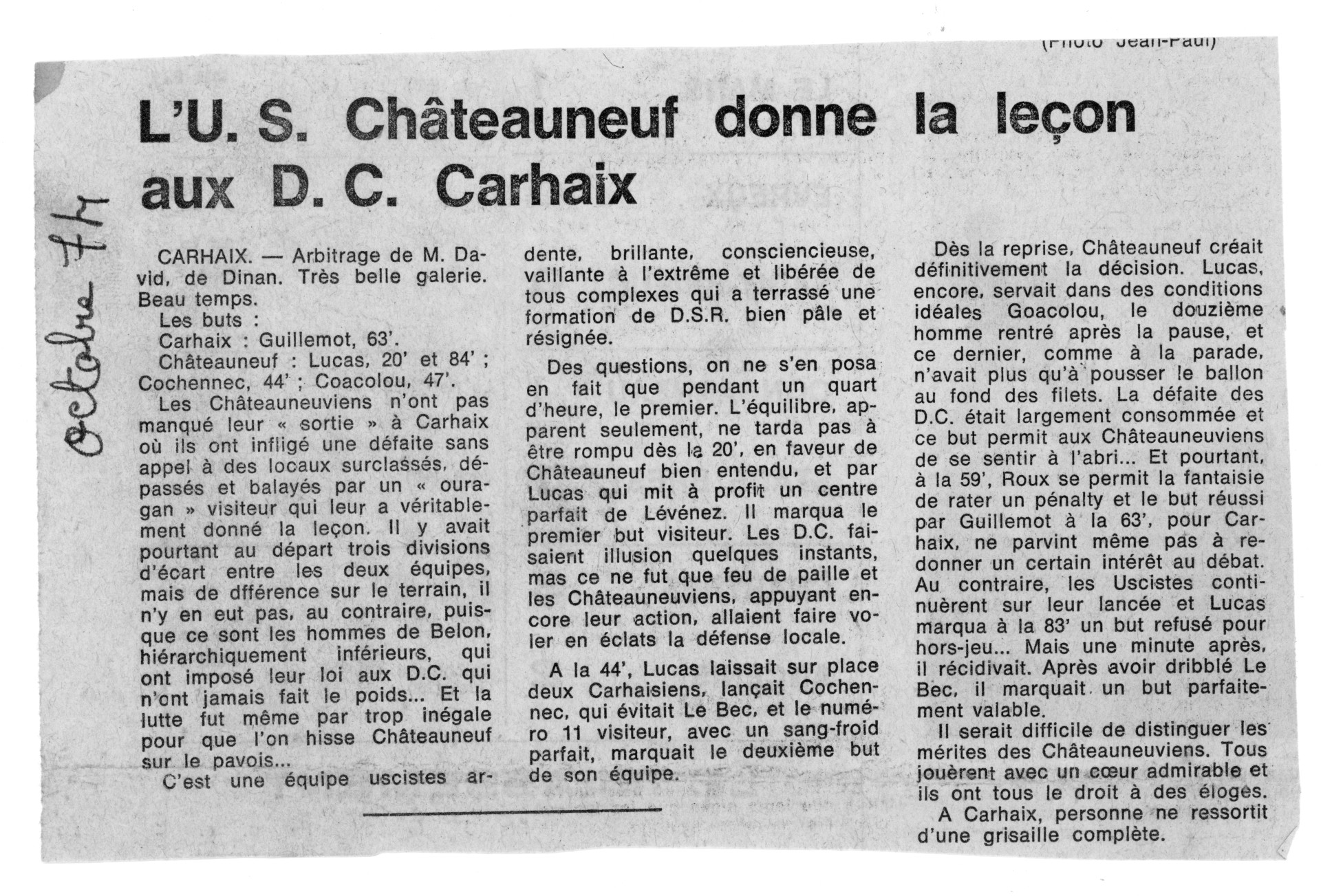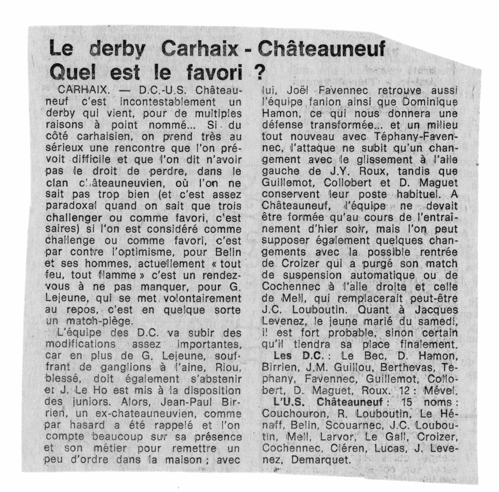 L'U.S. Châteauneuf - 15 noms : Couchouron, R. Louboutin, Le Hénaff, Belin, Scouarnec, J.C. Louboutin, Mell, Larvor, Le Gall, Croizer, Cochennec, Cléren, Lucas, J. Levenez, Demarquet**Italic text