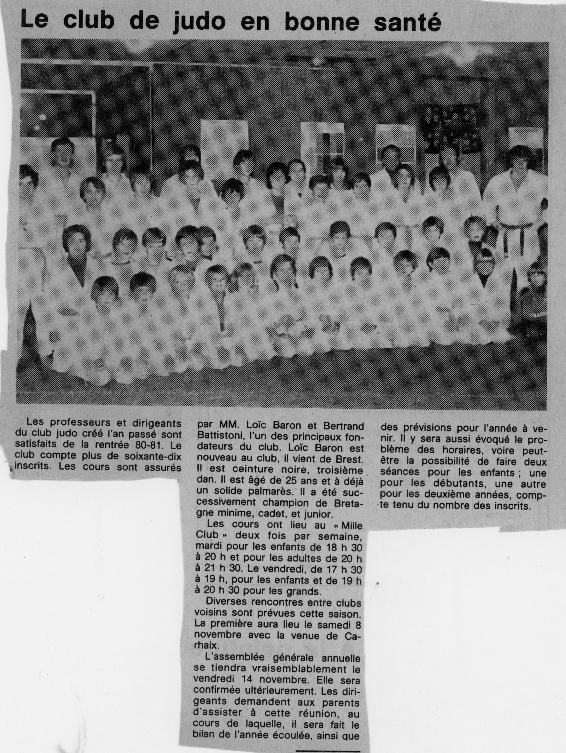 Le club de judo en bonne santé Les professeurs et dirigeantsdu club judo créé l'an passé sont satisfaits de la rentrée 80-81. Le club compte plus de 70 inscrits.