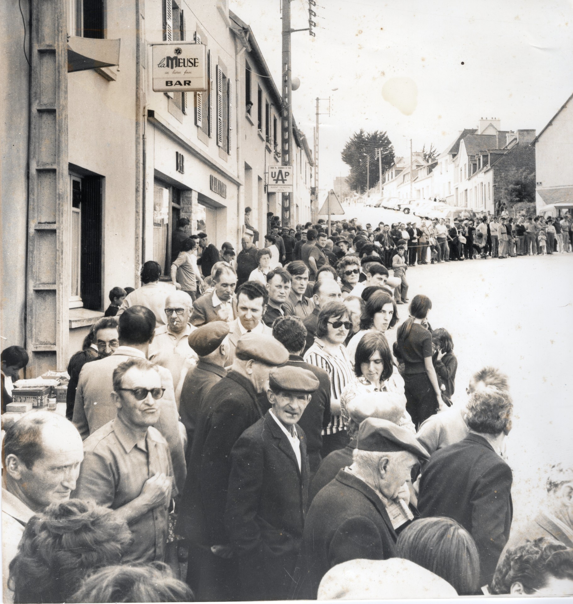 Les spectateurs rassemblés dans le virage rue du Général de Gaulle (rue de la gare), bien postés pour l'arrivée des coureurs.