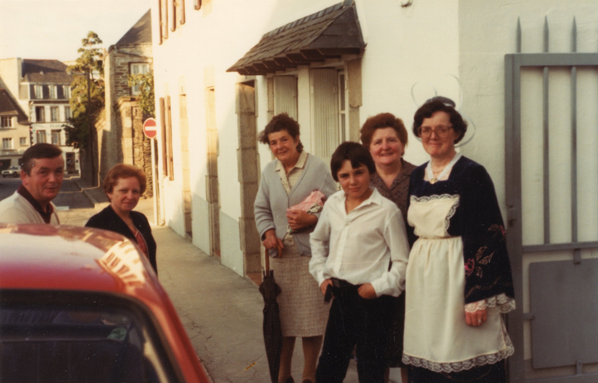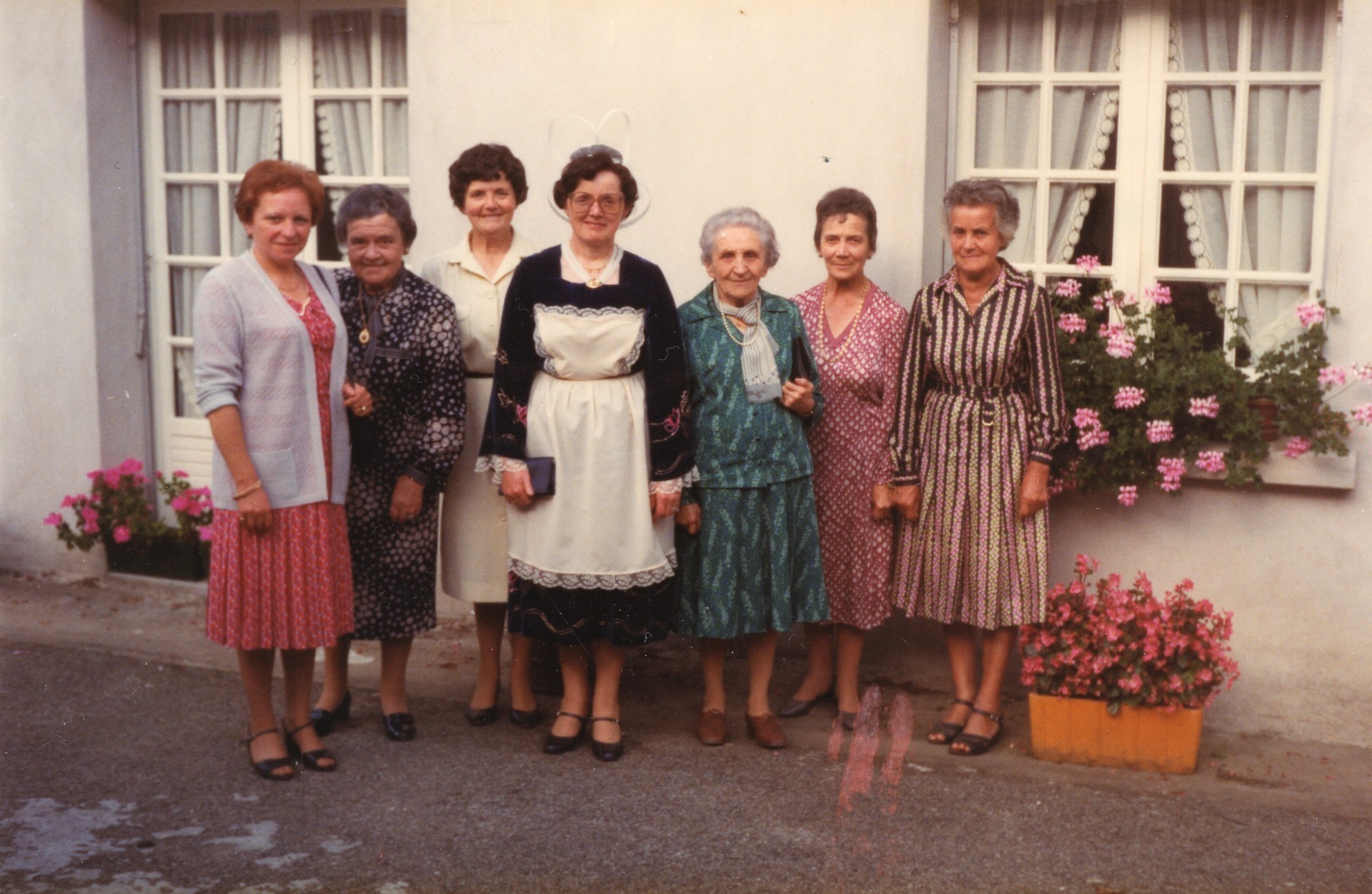Christiane Moreau, entourée de sa sœur Madeleine Le Meur, de sa belle-sœur Marie-Louise Moreau, de sa belle-mère Anna Moreau et de parentes et amies.